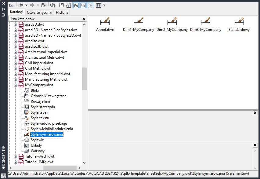 Rozpocznij od stylów wymiarowania. W tym celu w prawym górnym panelu kliknij dwukrotnie opcję Style wymiarowania.