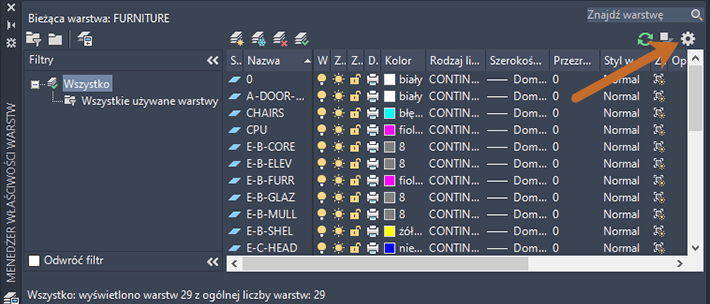Warstwa FURNITURE jest teraz warstwą bieżącą.