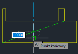 Znaczniki środka i linie środkowe można również edytować przy użyciu uchwytów. Wskazanie uchwytu kursorem spowoduje wyświetlenie wymiarów dynamicznych linii pomocniczej.