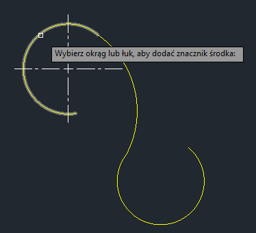 | ZNACZNIKŚRODKA | Tworzy zespolony znacznik krzyżowy w środku wybranego okręgu lub łuku. |
