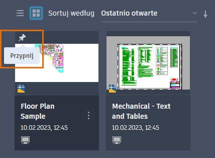 Przypięcie pliku powoduje, że będzie on wyświetlany na górze listy aż do momentu odpięcia.