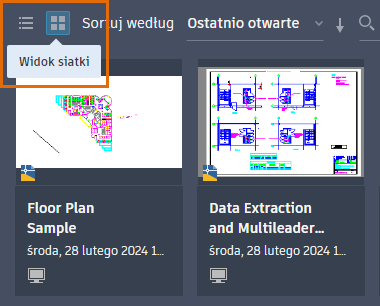 - Powyżej dokumentów wybierz widok siatki, w którym wyświetlane są miniatury i tekst, ewentualnie widok listy, w którym wyświetlany jest tylko tekst.