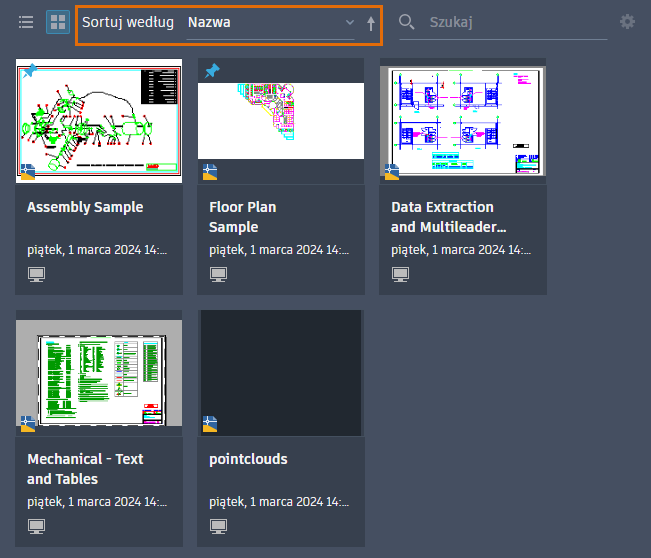 Ostatnio używane dokumenty można sortować i przeszukiwać.
