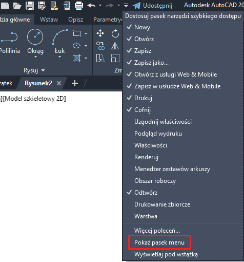 Klasyczny obszar roboczy nie jest już dostępny w programie AutoCAD LT.