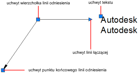 Bezpośrednio za pomocą uchwytów wielofunkcyjnych można tworzyć wiele edycji linii odniesienia. Można dodawać i usuwać linie odniesienia, dodawać i usuwać wierzchołki, przedłużać lub przesuwać linię łączącą lub przesuwać tekst linii odniesienia.