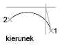 Rozpoczyna łuk stycznie do podanego kierunku. Tworzy dowolny łuk, większy albo mniejszy, zgodnie lub przeciwnie do kierunku ruchu wskazówek zegara, rozpoczynający się w punkcie (1) i kończący się w końcu (2.) Kierunek jest określany od punktu początkowego.