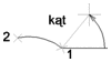 Rysuje łuk o podanym kącie rozwarcia, przeciwnie do kierunku ruchu wskazówek zegara od punktu początkowego (1), wykorzystując środek (2). Jeśli kąt jest ujemny, narysowany zostanie łuk zgodnie z kierunkiem ruchu wskazówek zegara.