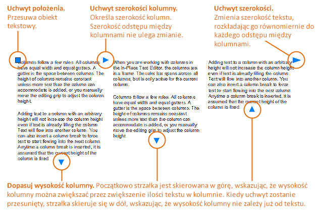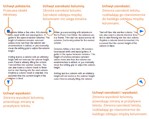 - Przesuń kursor do obwiedni ramki tekstu (prawa strona, dół i narożnik) w celu zmiany wysokości i szerokości kolumny.