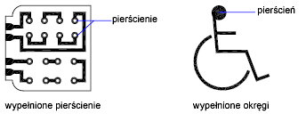 Pierścienie to wypełnione okręgi, które w rzeczywistości są zamkniętymi poliliniami o określonej szerokości.