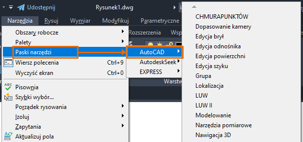 Aby wyświetlić pasek narzędzi, kliknij kolejno