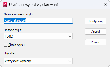 Nadaje nazwę nowemu stylowi wymiarowania, ustala styl, na którym będzie oparty tworzony nowy styl i wskazuje typy wymiarów, których ma dotyczyć nowy styl.