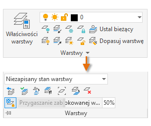 Oprócz Menedżera właściwości warstw narzędzia warstw są dostępne na panelu Warstwy na karcie Narzędzia główne na wstążce.
