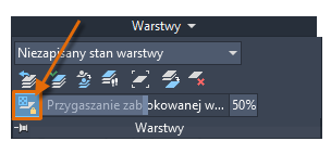 Funkcja przygaszania zablokowanych warstw pozwala ograniczyć wizualną złożoność rysunku i jednocześnie zachować odniesienia wizualne i możliwości lokalizacji względem obiektu.