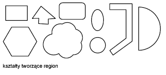 Istnieje możliwość tworzenia regionów na podstawie obiektów tworzących zamknięte pętle. Pętle mogą być kombinacjami linii, polilinii, okręgów, łuków, elips, łuków eliptycznych i splajnów otaczających obszar.