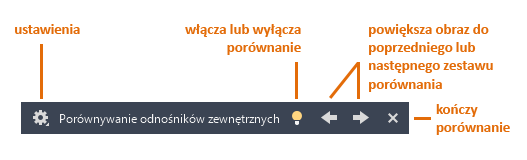 Po rozpoczęciu operacji porównywania wyświetlany jest pasek narzędzi Porównywanie odnośników.
