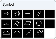 Symbol jest wstawiany do pola tekstowego Sym w oknie dialogowym Tolerancja geometryczna. Poniższa tabela opisuje każdy z symboli.