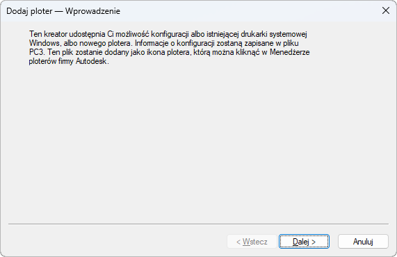 Kreator tworzy plik PC3, który można edytować w Edytorze konfiguracji plotera. Konfiguracje zapisywane są w folderze Plotters.