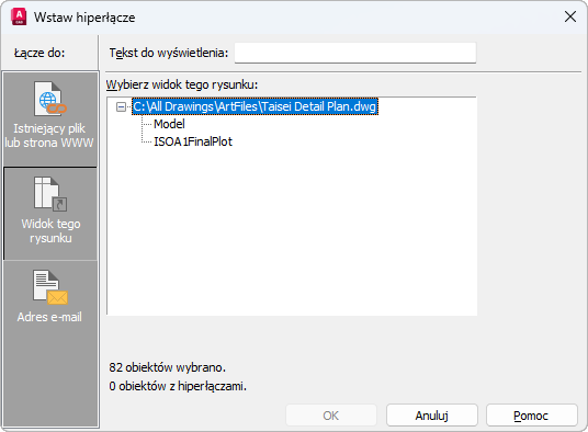 Otwiera okno dialogowe Wybierz miejsce w dokumencie umożliwiające wybranie nazwanego położenia na rysunku, dla którego ma zostać utworzone połączenie.