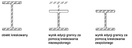 Domyślnie kreskowania obramowane są zespolone, co oznacza, że obiekt kreskowania jest zespolony z obwiedniami kreskowania, a zmiany wprowadzone w obwiedniach są automatycznie stosowane w kreskowaniu.