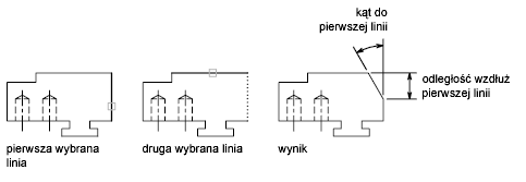Fazowanie narożników przez określenie wartości długości i kąta (Zestaw narzędzi AutoCAD Mechanical)