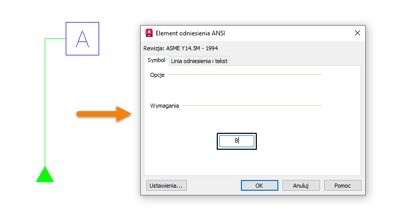 | 0 — wyłączone | W oknie dialogowym Symbol (AMDATUMID i AMFEATID) znajduje się pojedynczy znak „A” (wielką literą). Można zaakceptować domyślny identyfikator lub ręcznie wprowadzić wymagany identyfikator podczas dodawania dodatkowych identyfikatorów lub w przypadku, gdy wymagany jest identyfikator powielony lub niestandardowy. |