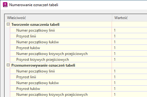 Rysunek 18: Opcja numerowania oznaczeń tabeli