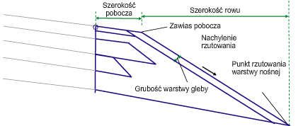 | Grubość wierzchniej warstwy gleby | Określa głębokość materiału wyłożenia wzdłuż połączenia rzutowania. Jeśli wprowadzona zostanie wartość ZERO, wówczas materiał wyłożenia nie zostanie dodany. | Liczbowy, nieujemny | 0.0 |