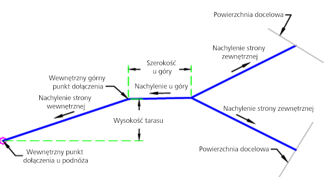 | Dołącz punkt | Punkt dołączenia, od którego będzie tworzony taras. | Wewnętrzne podnóże/Wewnętrzny szczyt | Wewnętrzne podnóże |