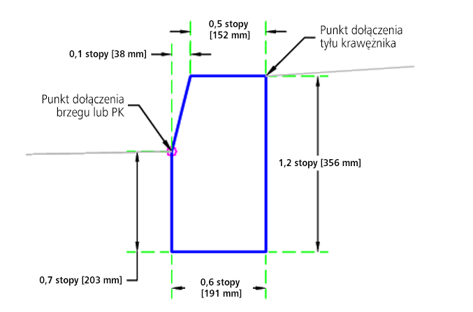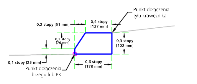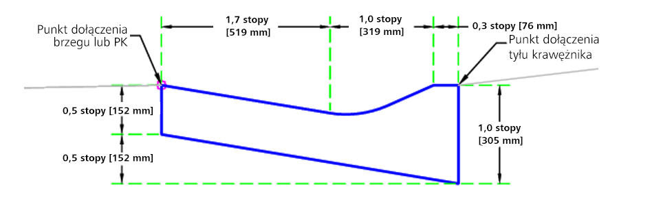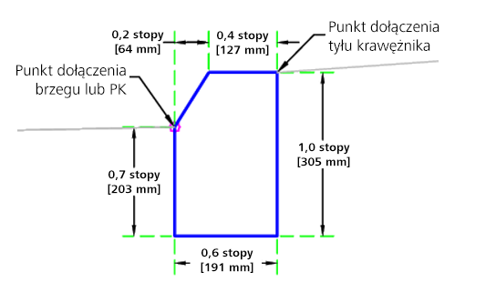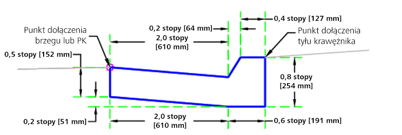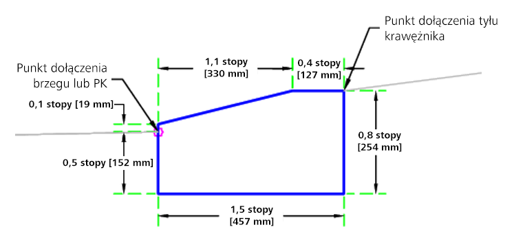 Za pomocą podzespołu CaltransCurbs wstawiane są połączenia tworzące krawężniki i ścieki na podstawie planu standardowego Caltrans Standard Plan RSP A87A.