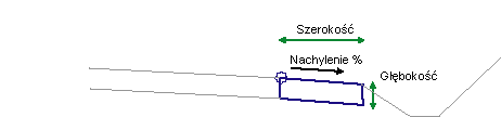 Połączenia pobocza wstawiane są na zewnątrz punktu dołączenia, przy użyciu podanej szerokości, głębokości i nachylenia.