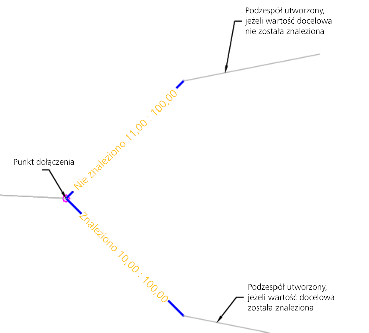 | Początek wyszukiwania | Określa, czy wartość odległości jest obliczana od linii trasowania linii bazowej czy od punktu dołączenia podzespołu. | Linia bazowa/Punkt dołączenia | Linia bazowa |