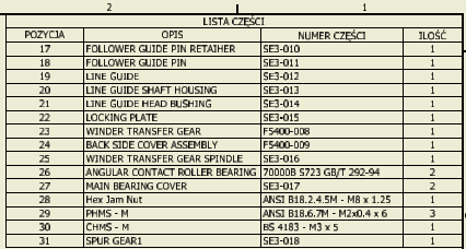 Istnieje możliwość podzielenia listy części, tabeli otworów, tabelki zmian lub ogólnej tabeli i przeniesienie podzielonej sekcji do nowej lokalizacji lub arkusza.