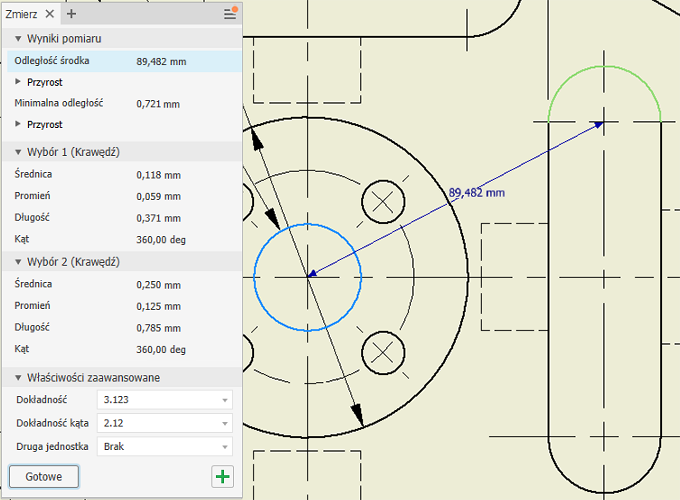 Geometria, która zostanie wybrana do pomiaru, pozostanie wyróżniona w oknie graficznym.