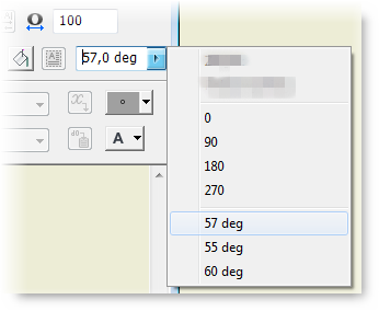 W przypadku uwagi do rysunku kliknij strzałkę, aby wybrać orientację obrotu lub wprowadź kąt obrotu w polu edycji. W przypadku tekstu szkicu wybierz z listy opcję Obróć lub utwórz nowy LUW, aby ustawić orientację tekstu.