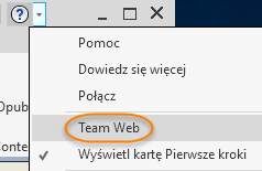 Korzystanie z opcji Team Web w celu uzyskania dostępu do pomocy niestandardowej lub strony startowej