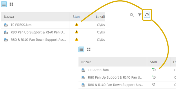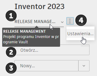 Kliknij przycisk Otwórz, aby przejść do dokumentu w celu otwarcia go do edycji lub wyświetlenia. W trakcie sesji programu Inventor podczas otwierania dokumentu lokalnie lub z programu Vault opcja ostatnio użyta do otwarcia pliku jest zapamiętywana przy następnym otwarciu dokumentu.