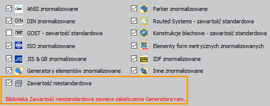 Zainstaluj bibliotekę Zawartość niestandardowa programu Inventor.