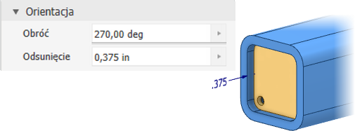 - Ustaw wartość Obrót. Przykładowo, aby umieścić element zakończenia, taki jak otwór spustowy, w odpowiednim położeniu.