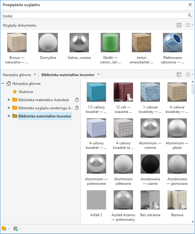 Biblioteka wyglądów Autodesk zainstalowana z produktem lub pakietem zapewnia wiele zasobów wyglądu. Produkty, takie jak AutoCAD, Inventor i Revit współdzielą tę bibliotekę tylko do odczytu, aby zapewnić bardziej spójne wyświetlanie w różnych produktach.