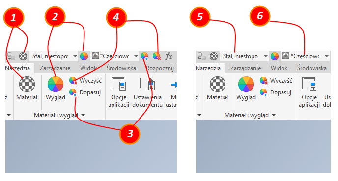 Wyglądy określają wizualne aspekty materiału i są przypisane do dowolnej powierzchni, elementu, części lub zespołu. Pokazują, w jaki sposób część lub zespół często wygląda w stanie nieukończonym, podczas przetwarzania lub po ukończeniu. Wyglądy mogą służyć jako wizualne narzędzie grupowania przez zastosowanie ich do wielu części lub zespołów.