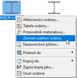 Uruchom Edytor Content Center (karta Narzędzia, Edytor), kliknij prawym przyciskiem myszy nową rodzinę i wybierz polecenie Zamień szablon rodziny.