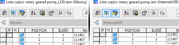 | | Lista części korzysta z domyślnego formatowania zdefiniowanego w aktywnym stylu listy części skojarzonym z aktywnym standardem rysunkowym. Jeśli lista części jest utworzona poprzez wybór widoku składnika iAssembly, domyślnym staje się składnik w widoku. Kolumna ILOŚĆ dla składnika jest wyświetlana na liście części, jeśli została określona w stylu. Jeśli lista części jest utworzona poprzez przeglądanie zespołu iAssembly, to domyślna lista części istnieje dla aktywnego składnika. |
