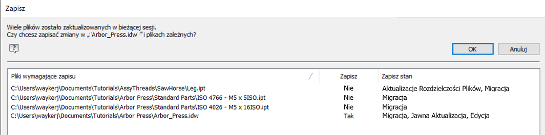 Zapisz kopię jako. Wszystkie zmiany w plikach odniesienia powodują wyświetlenie okna dialogowego Zapisz.