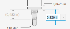 Średnica przedstawia wartość średnicy otworu danego typu elementu. Wartość ta odnosi się do sposoby reprezentowania gwintów na widokach rysunku.