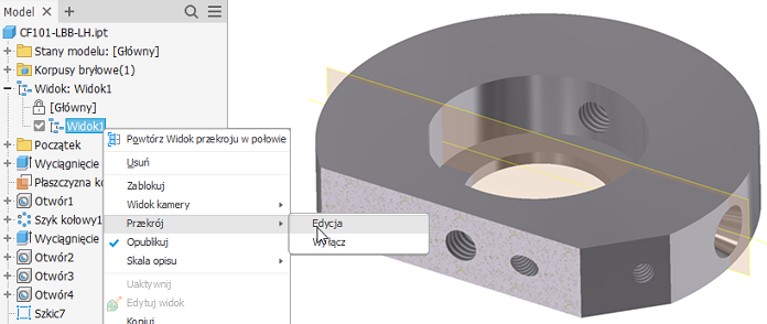 Opcje aplikacji, aby uzyskać dostęp do opcji aplikacji.W przeglądarce modelu kliknij prawym przyciskiem myszy reprezentację widoku zawierającą widok przekroju, który chcesz edytować, i kliknij kolejno Widok przekroju > Edytuj.