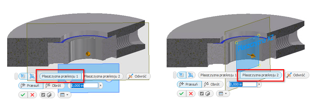 Przeciągnij płaszczyznę lub wprowadź wartość w polu, aby zmienić położenie.