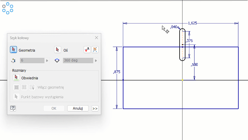 W obszarze rysunku wybierz geometrię, z której chcesz utworzyć szyk.
