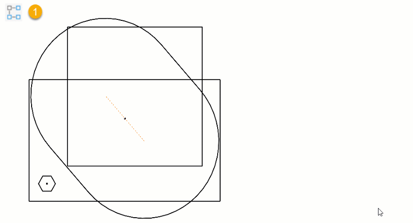 (Opcjonalnie, 2D) W przypadku odbijania splajnu, który przecina oś odbicia, wybierz opcję Autosymetryczne, aby utworzyć pojedynczy splajn symetryczny względem osi odbicia.