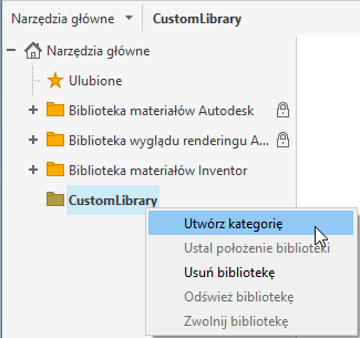Kliknij prawym przyciskiem myszy nową bibliotekę w lewym dolnym panelu, kliknij polecenie Utwórz kategorię, a następnie nazwij kategorię.