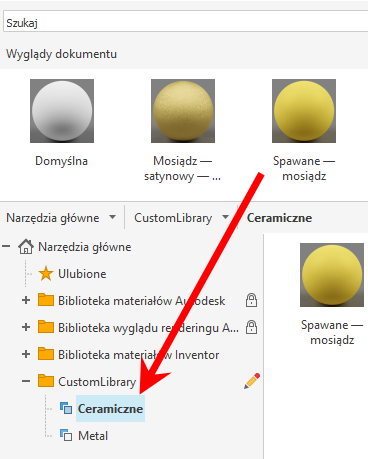 Kliknij przycisk Zapisz. Biblioteka jest widoczna na liście bibliotek w dolnej części przeglądarki wyglądów.